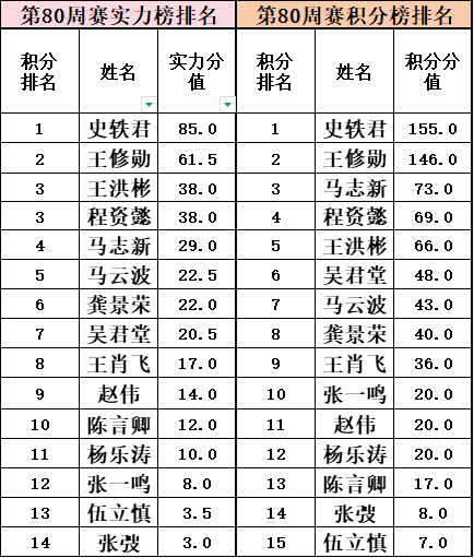 第80场周赛实力榜